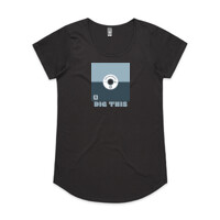 Scoop neck, capped sleeves, curved tails